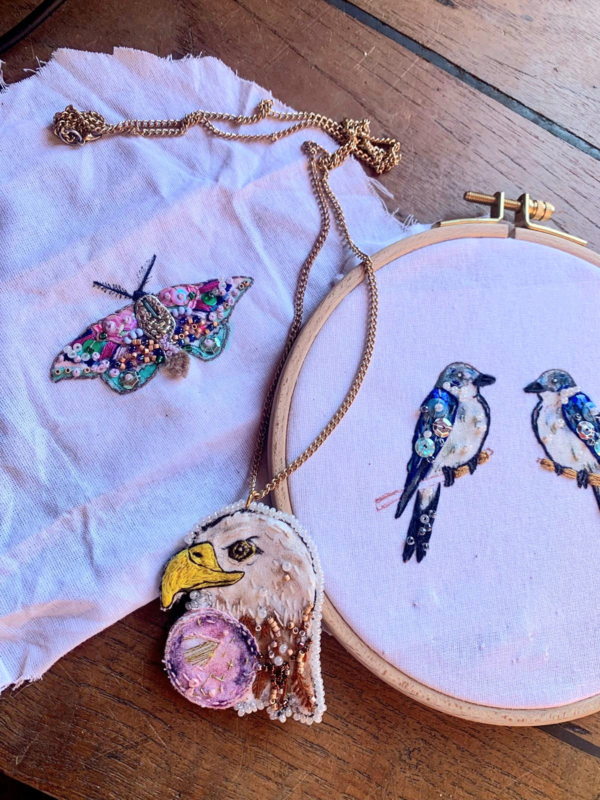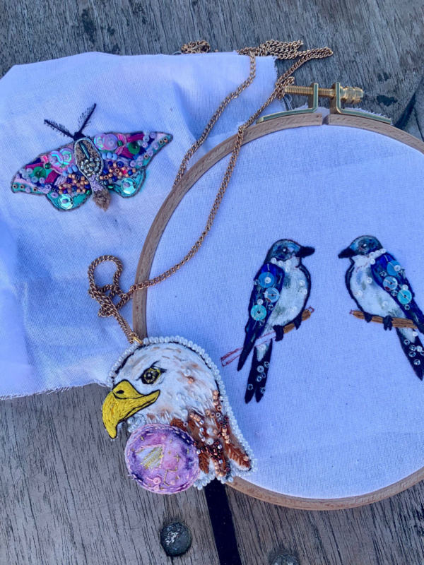 Kies je gewenste dier, met speciale textielverf maak je de basis. Met borduurdraad, kraaltjes lovertjes in allerlei kleuren, ga je details aanbrengen met prachtige hangers als resultaat!